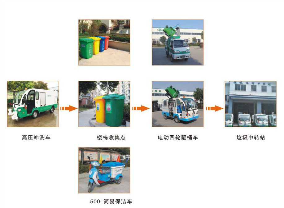 B:桶裝車載——小區環衛機械化作業示意圖